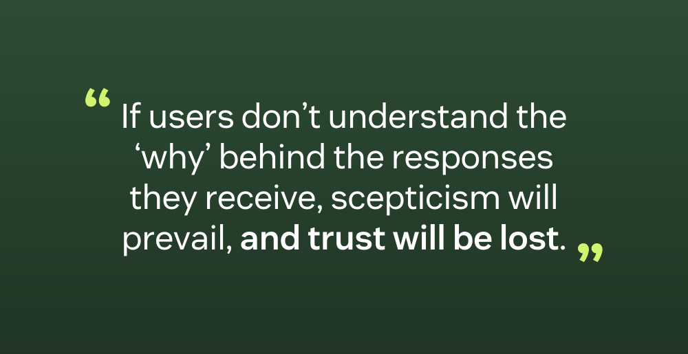 While AI has massive potential to redefine exceptional CX, its success hinges on transparency. If users don’t understand the ’why’ behind the responses they receive, skepticism will prevail, and trust will be lost. Creating AI-powered customer experiences that users can trust is all about providing visibility into the path to resolution.