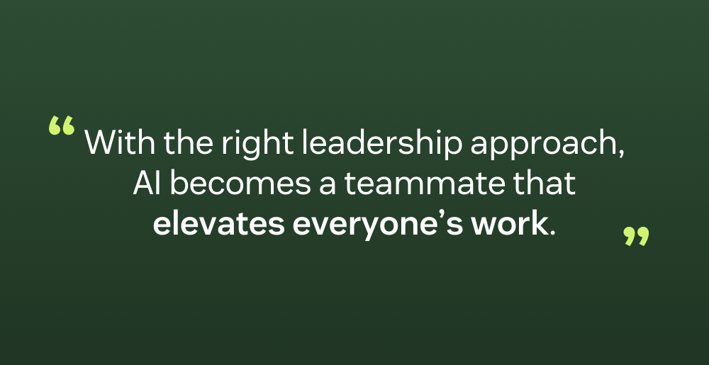 Through shared workflow design, leaders can signal to their teams that AI is supported and encouraged as part of the larger organizational strategy, not something they need to navigate alone.