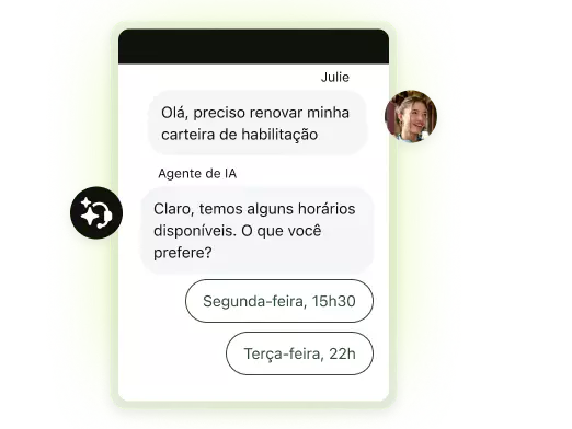 Use agentes de IA para lidar com perguntas frequentes, como status de licenças, elegibilidade para benefícios ou agendamento de atendimentos.