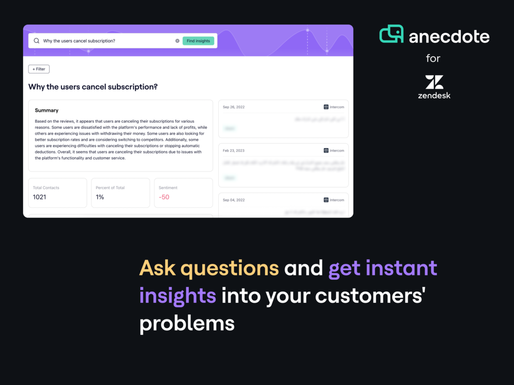 Unearth the insights buried within your customer feedback using Anecdote, the AI-powered analytics platform purpose-built to reveal the underlying reasons behind customer churn and to identify valuable feature requests. Integrate your qualitative feedback tickets directly from Zendesk to gain a comprehensive view via an insightful dashboard. Anecdote can assist you with: