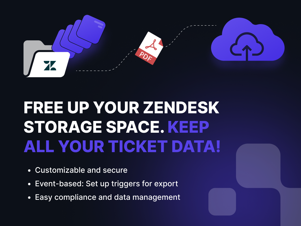 Easily manage your Zendesk tickets by exporting them to PDF, customized to your specific needs. Keep your ticket data organized and easily accessible, and free up valuable storage space with the option to bulk delete exported/archived tickets.