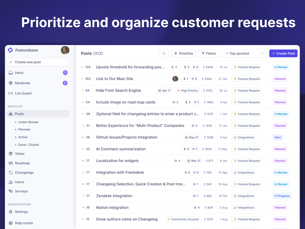Featurebase is a product feedback & changelog platform for fast-growing startups.