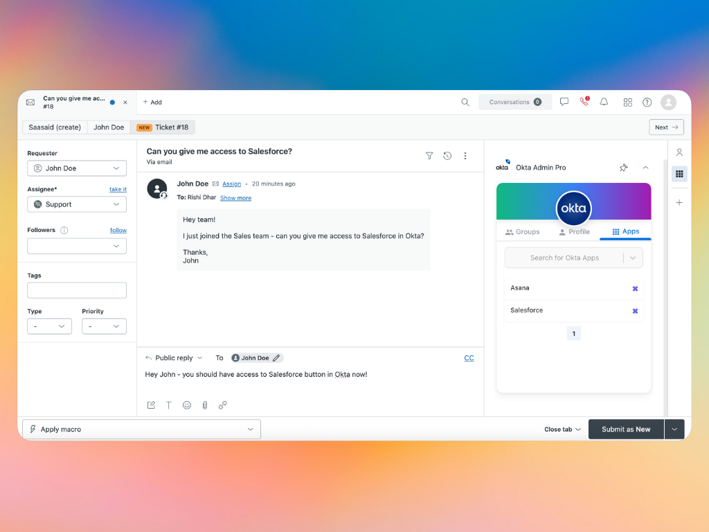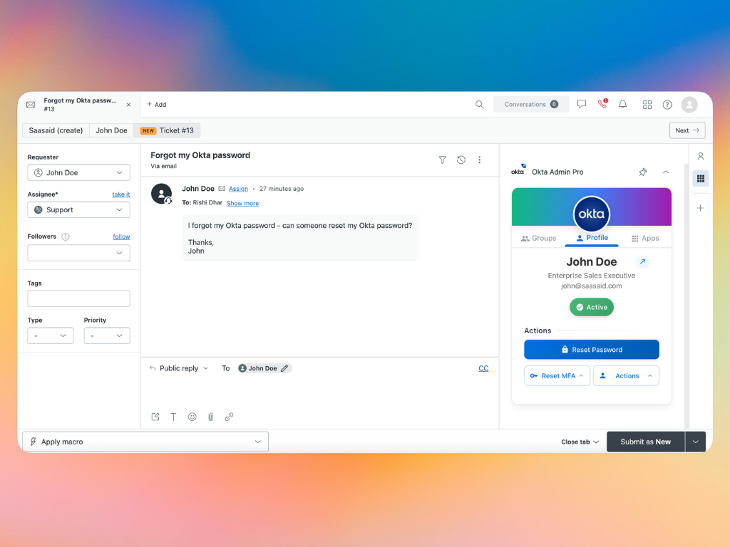 - Time-Saving: Eliminate context switching between Okta and Zendesk