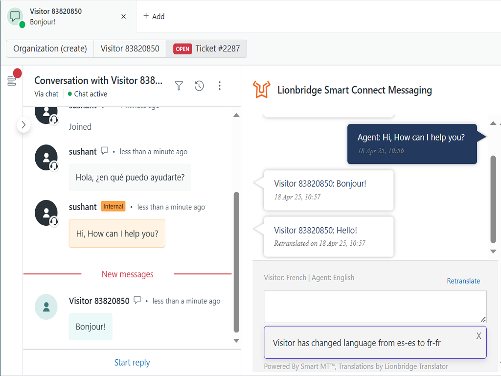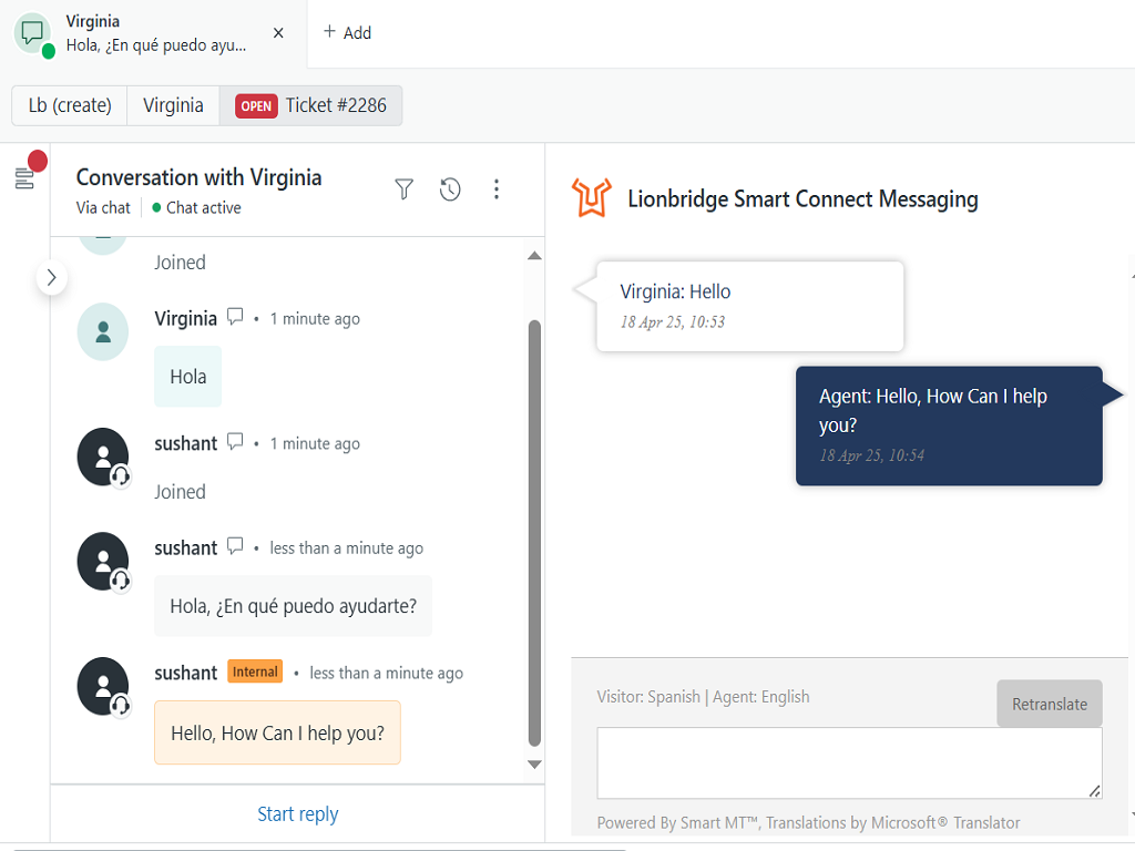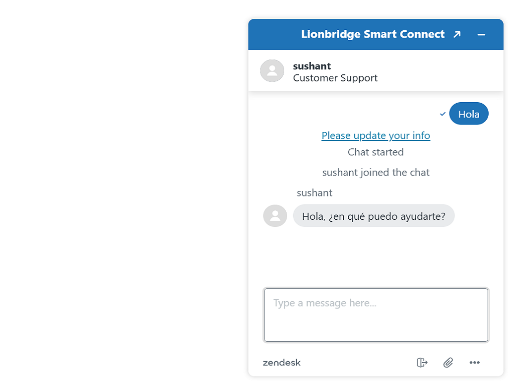 Lionbridge’s translation solution allows organizations to instantly add interaction support for chat in Zendesk Agent Workspace for more than 100 languages using their existing staff – with no IT involvement required.