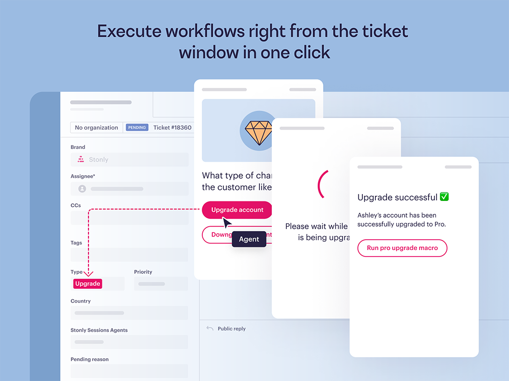 The Stonly app for Zendesk gives agents the guidance they need to solve each ticket quickly and accurately, without ever switching context and leaving Zendesk.