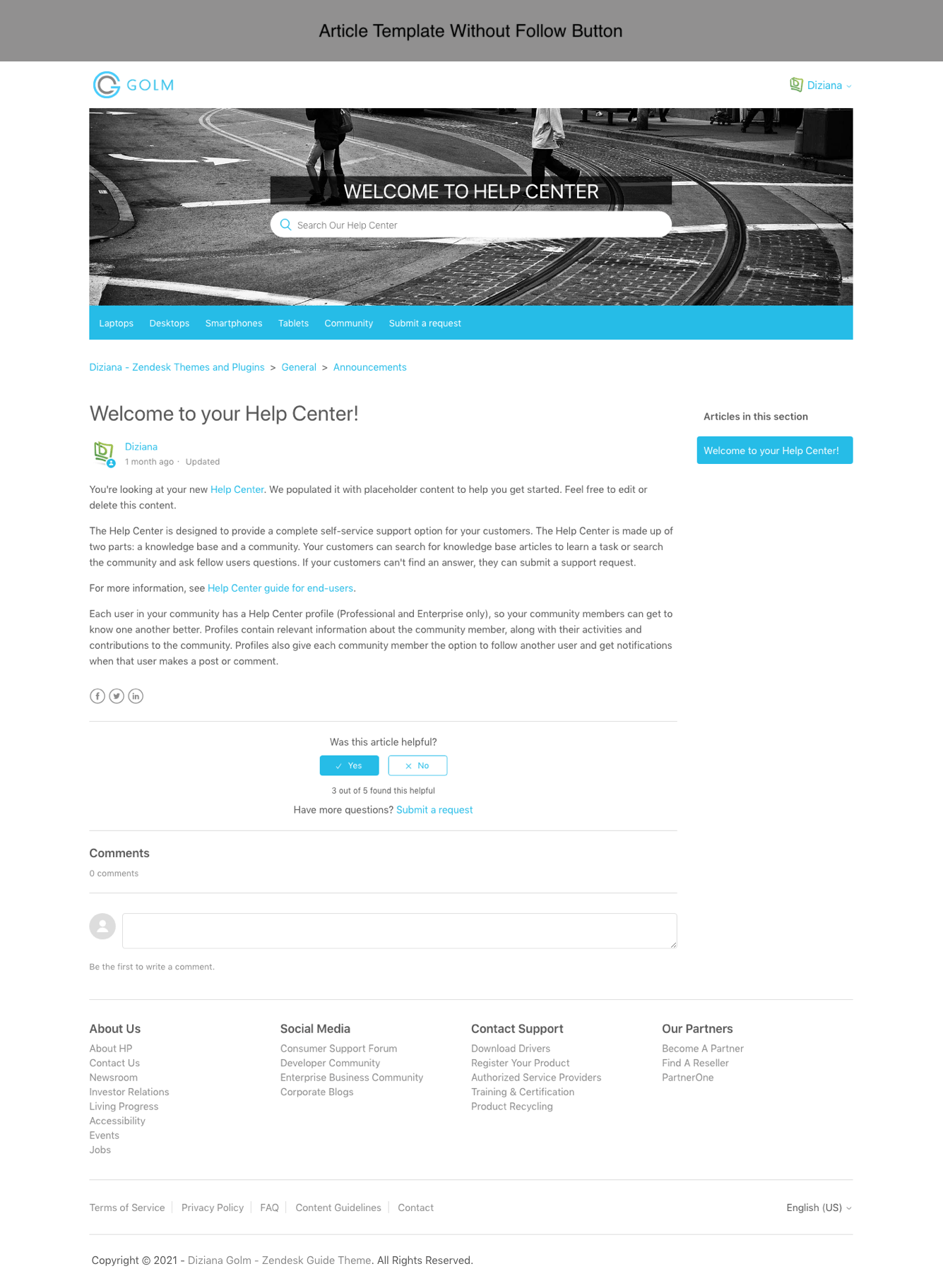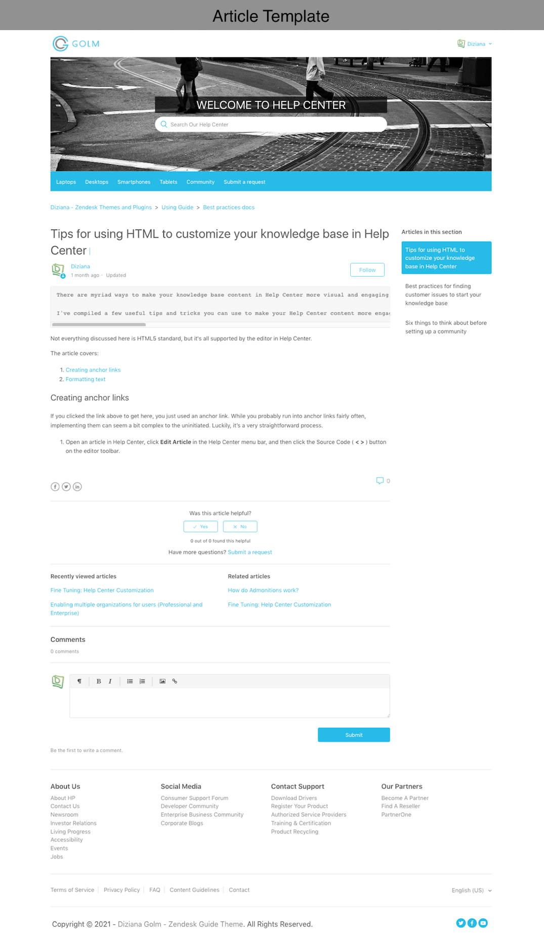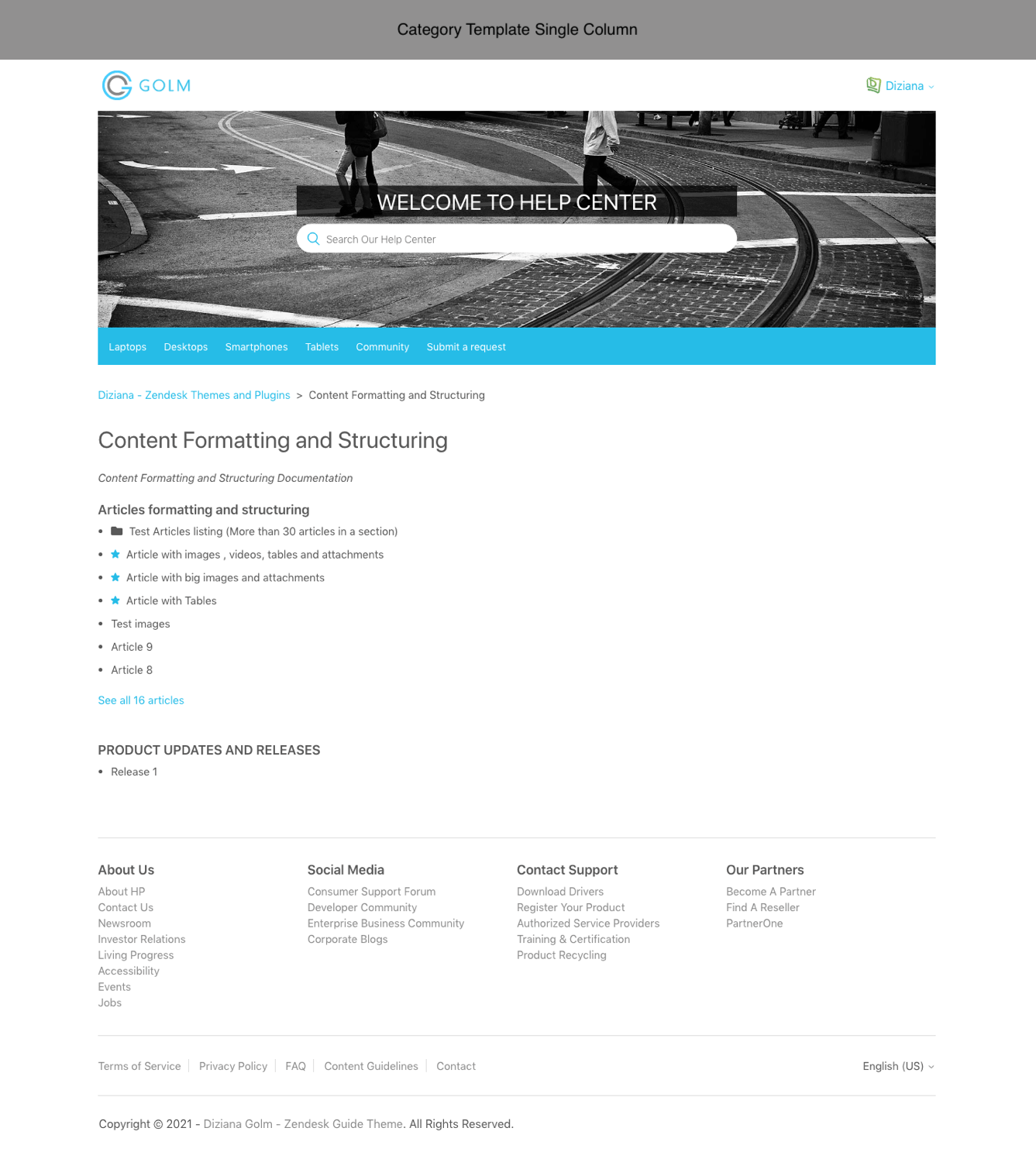 Diziana Golm is a fully responsive Zendesk® Guide Help Center Theme (templates); an elegant one.