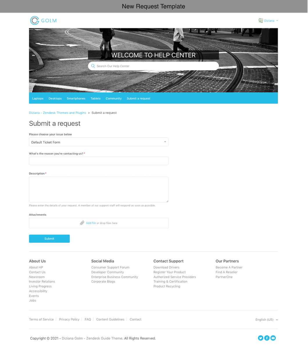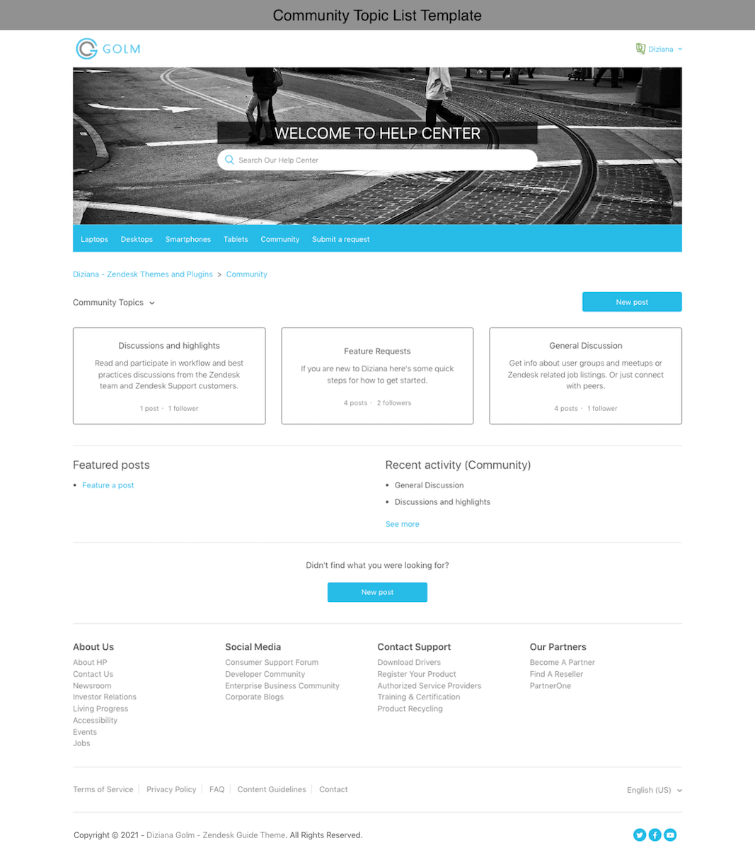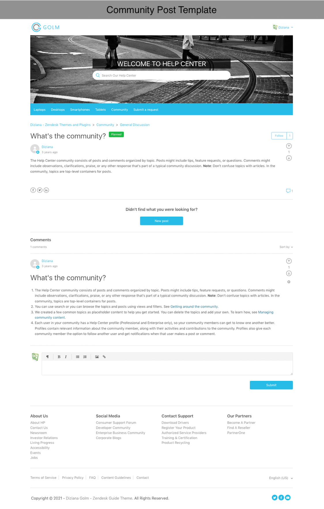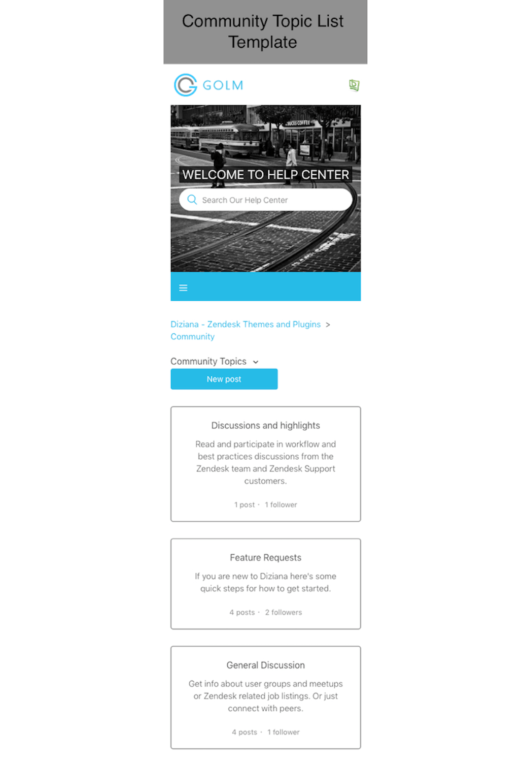 Diziana Golm is a fully responsive Zendesk® Guide Help Center Theme (templates); an elegant one.