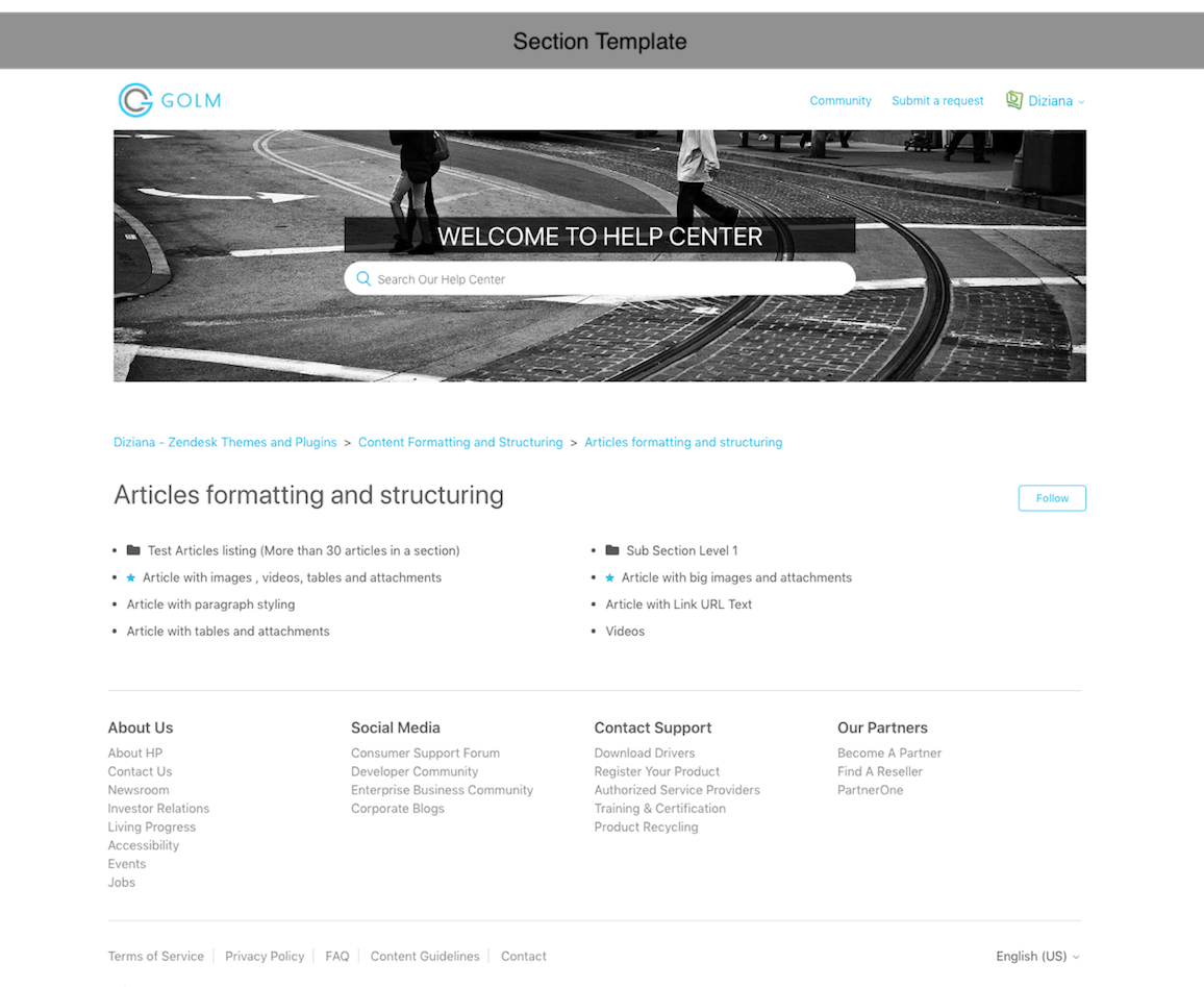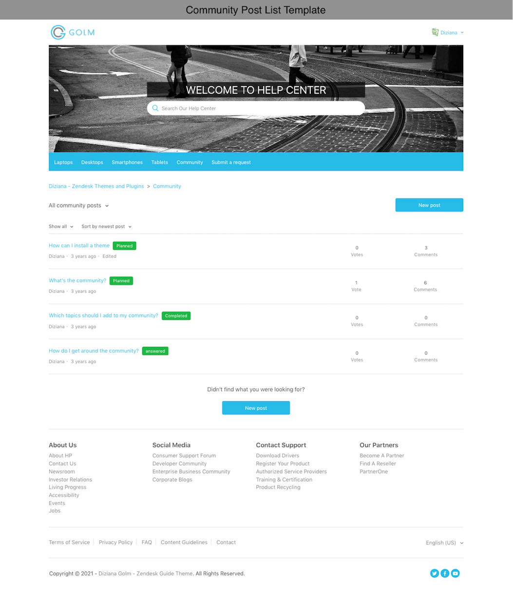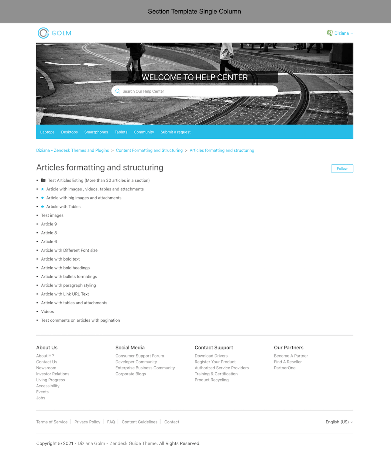 Diziana Golm is a fully responsive Zendesk® Guide Help Center Theme (templates). It can be used by all kinds of organizations -- Technology, Education, tours & travel, Food, Startups, IT, Medical, Construction, Builder, Marketing, Startup, Fashion, Government, NGO, Not-For-Profit - Companies, Business, or Organizations.