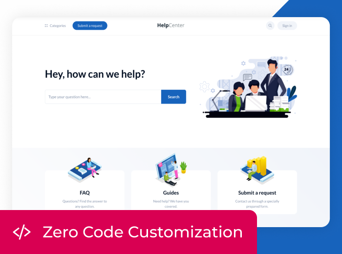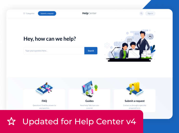 Zendesk theme that blends timeless elegance with modern flair. Zero-code customization and different layouts tailored for various industries. Optimized for Help Center v4 and Employee Service Suite.