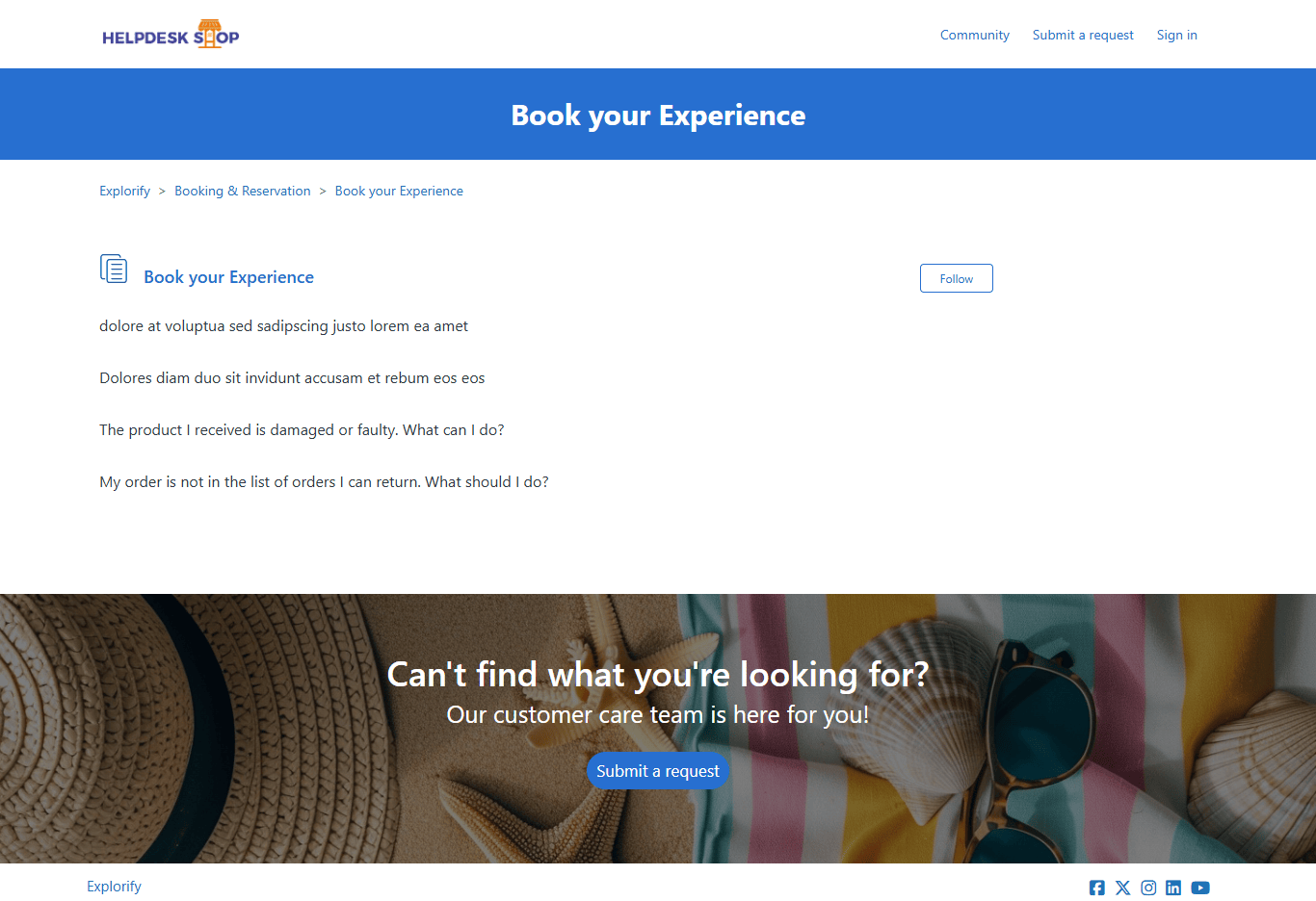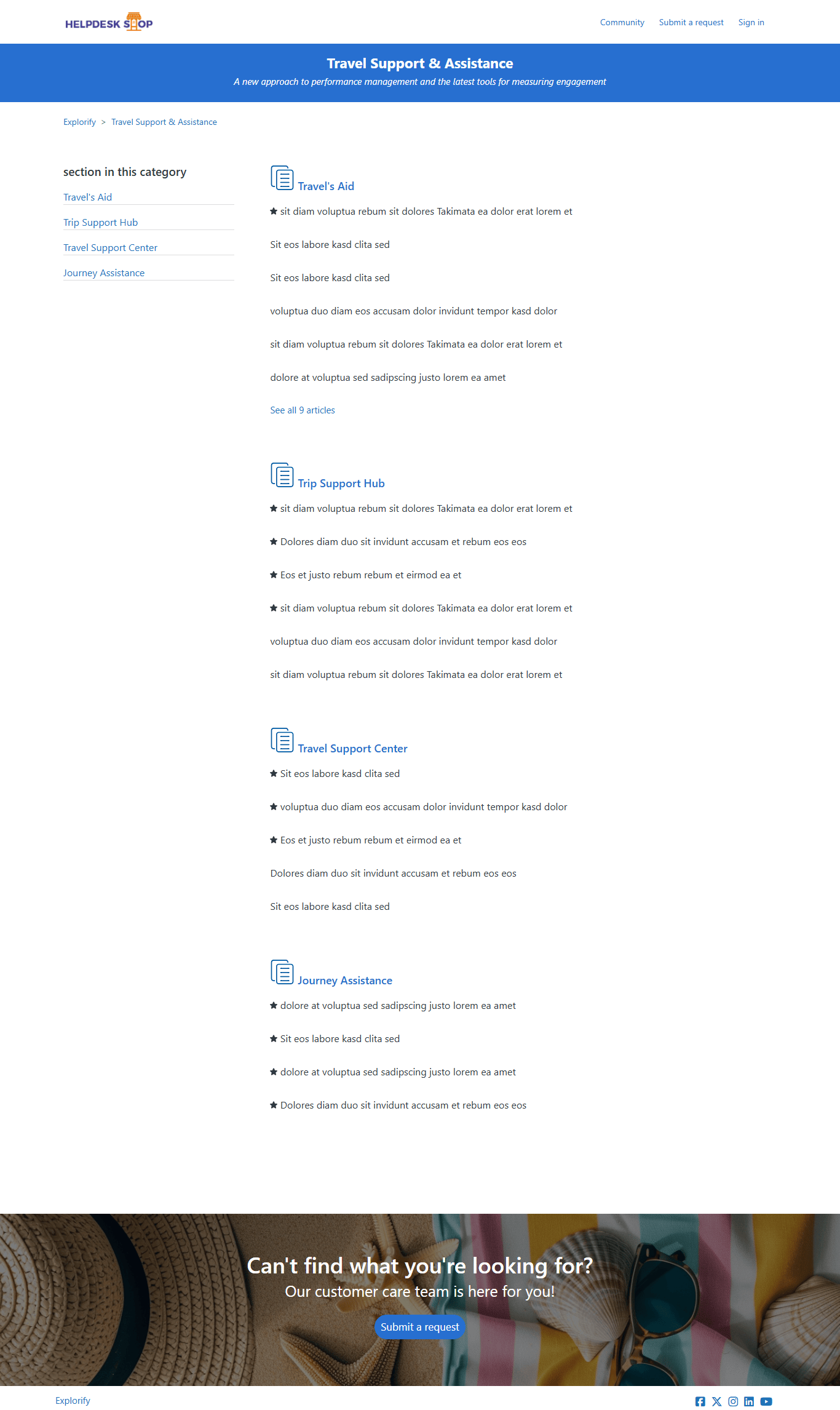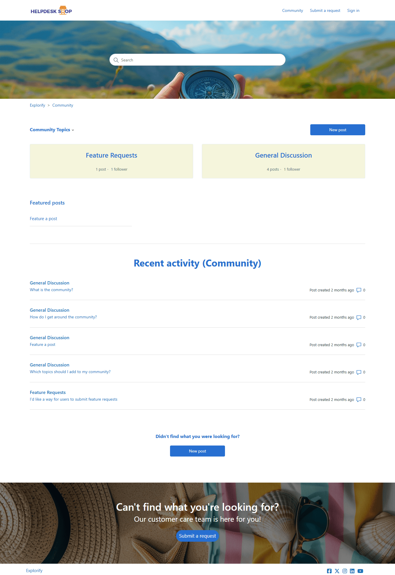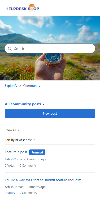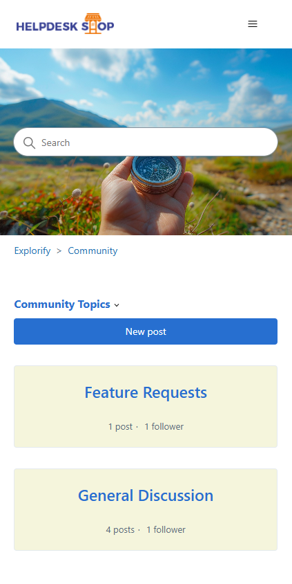 Explorify Theme is a fully responsive, multipurpose Zendesk Help Center (Guide) theme that strikes the perfect balance between style and performance. It features a sleek design with an eye-catching background image, giving your help center a modern and stylish appearance. The theme boasts a full-screen layout with beautifully designed blocks and interactive elements, creating an airy and elegant atmosphere.