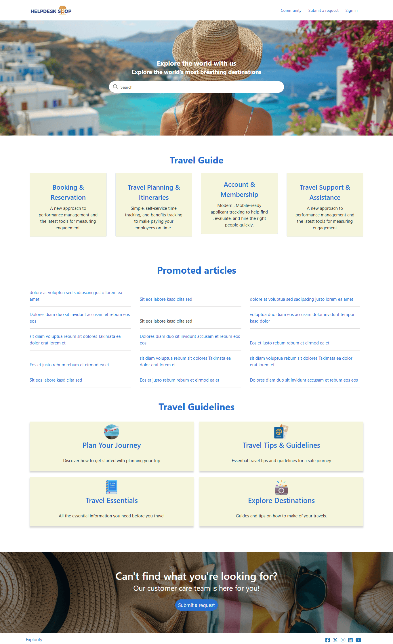 About the theme: Explorify is a fully responsive multipurpose Zendesk help center (guide) theme. The perfect Zendesk theme for travel related industries.This template is easily customizable to suit your brand identity All the elements of the help center are arranged in a way that keeps navigation super easy. The theme comes with a image at the back of floating search box at the center of left of it all. It has a stunning full screen layout with beautiful blocks and interactive design elements which generate an airy and elegant feeling to the help center. It follows the latest trends in web design and features a brand- new layout with a long list Features.