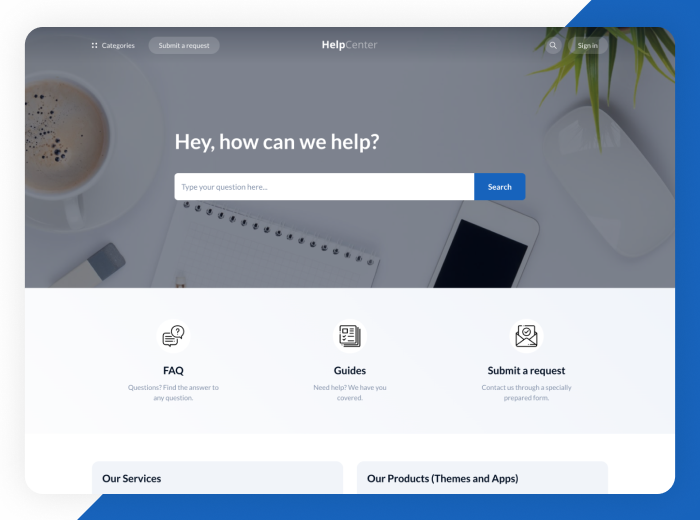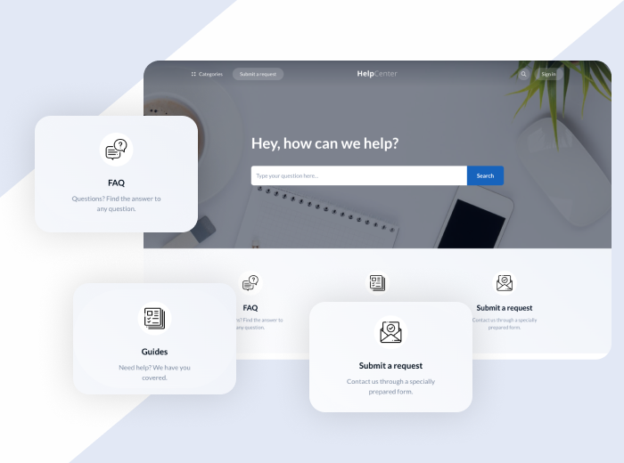 Play around with different styles and designs to reflect your unique identity. Adapt colors, images, icons, fonts, and logos: our Zendesk theme offers easy help center customization without coding.