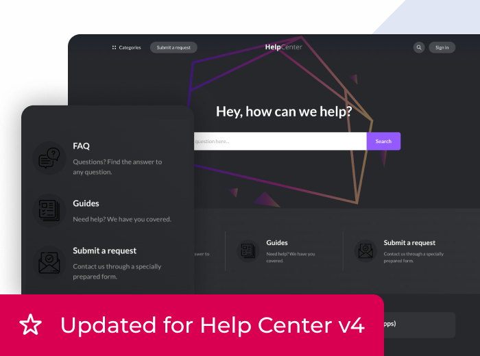 A minimalist dark Zendesk theme that makes your Help Center shine. Pick from multiple layouts in a single template, fully optimized for Help Center v4 with Generative Search support.