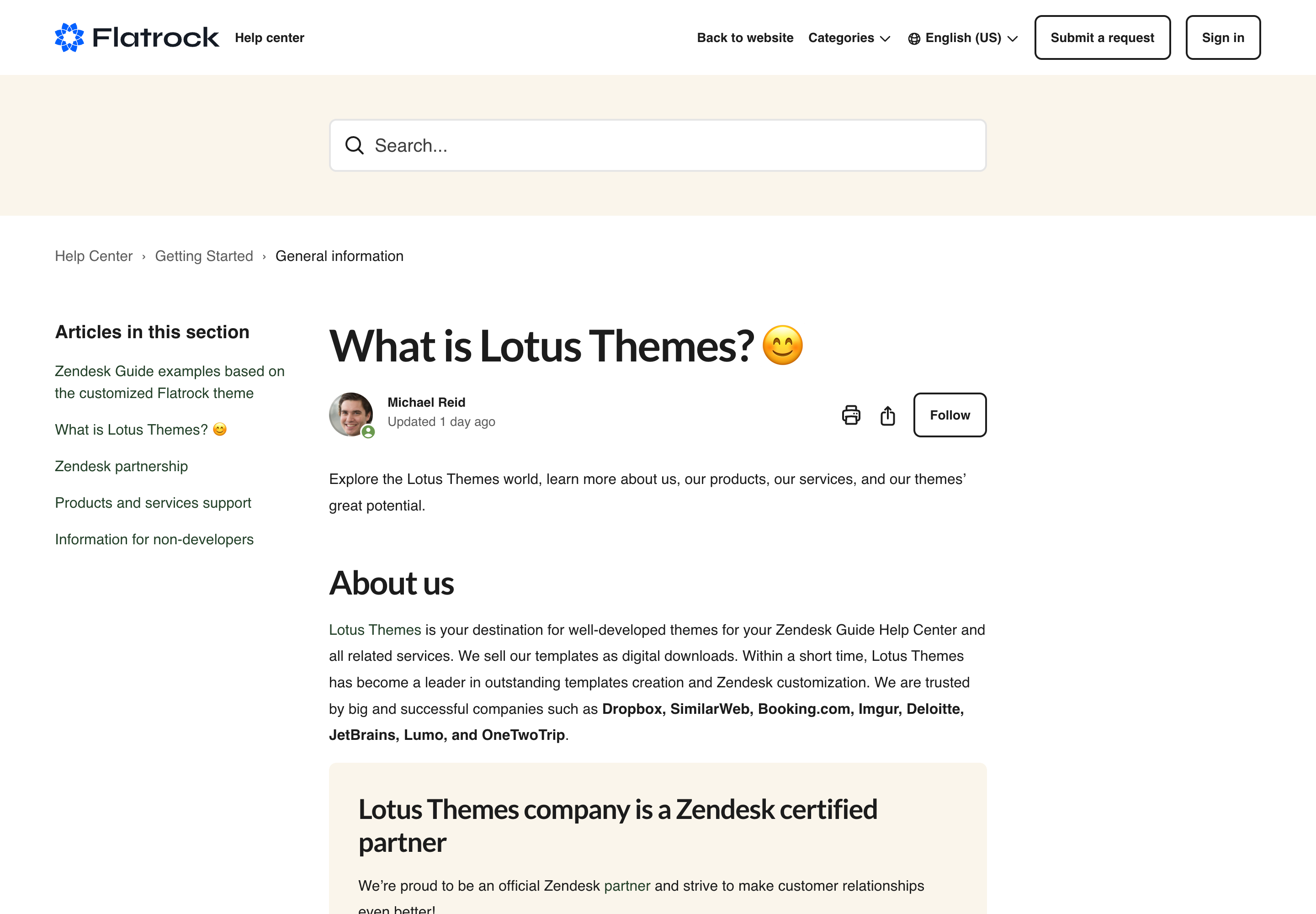 5,000+ companies have chosen Lotus Themes for their top-notch UX/UI design, consistent performance, ease of use, and multiple built-in features. Even Zendesk hires us to improve their help centers. View case studies →